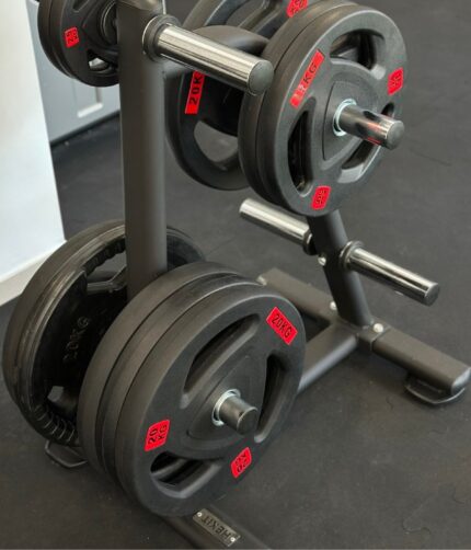 Izrađena je od visokokvalitetnog čelika koji pruža maksimalnu stabilnost i izdržljivost čak i pri većim opterećenjima. Namenjena je za olimpijske ploče prečnika fi50, što je čini pogodnom za korišćenje u profesionalnim teretanama, crossfit centrima i kućnim fitness zonama.