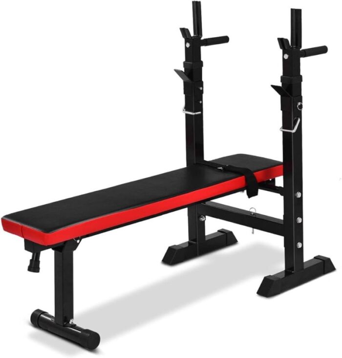 Ova sklopiva benč klupa sa integrisanim stalkom je praktično i multifunkcionalno rešenje za kućne treninge snage. Zahvaljujući čvrstoj konstrukciji i kompaktnim dimenzijama, idealna je za vežbanje na malom prostoru, a omogućava izvođenje osnovnih vežbi za razvoj grudi, ramena, ruku i leđa.