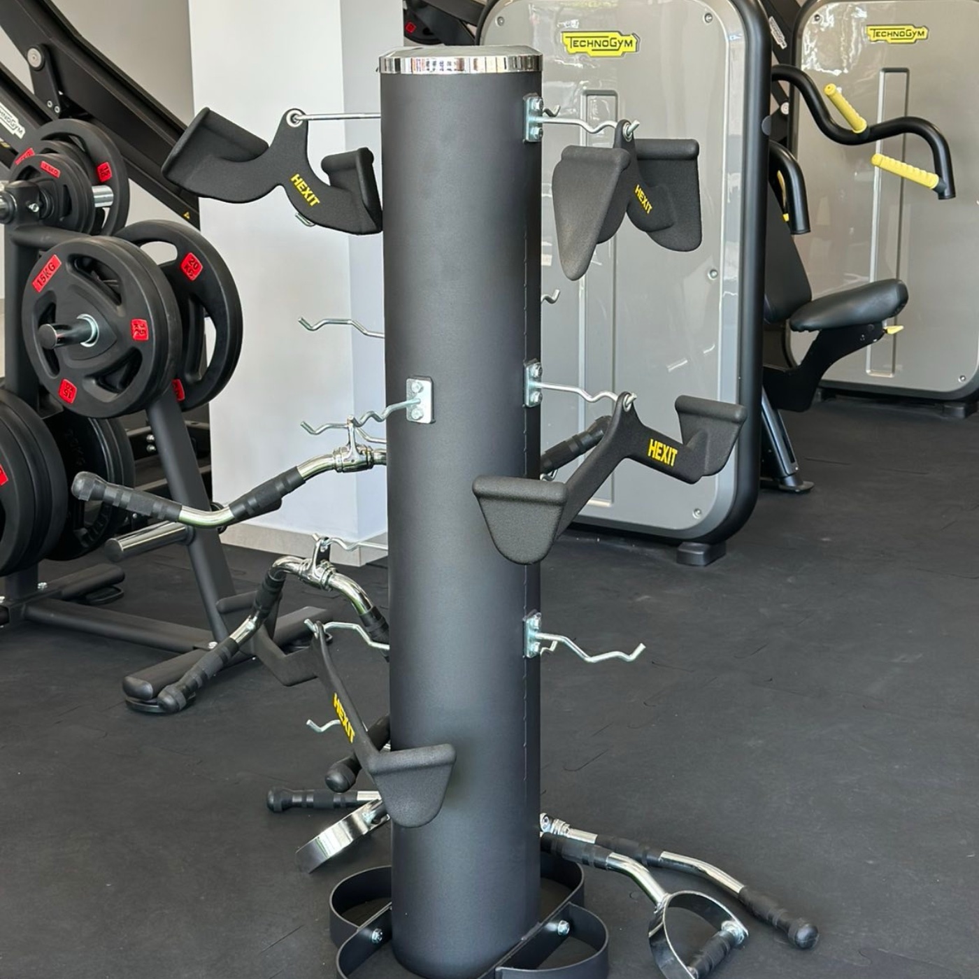 Stalak za nastavke je praktično i profesionalno rešenje za organizaciju svih dodataka za sprave i kablove u teretani. Omogućava da nastavci poput mag grip rukohvata, triceps konopca, šipki, ručki i drugih dodataka uvek budu pregledno složeni i lako dostupni tokom treninga.
